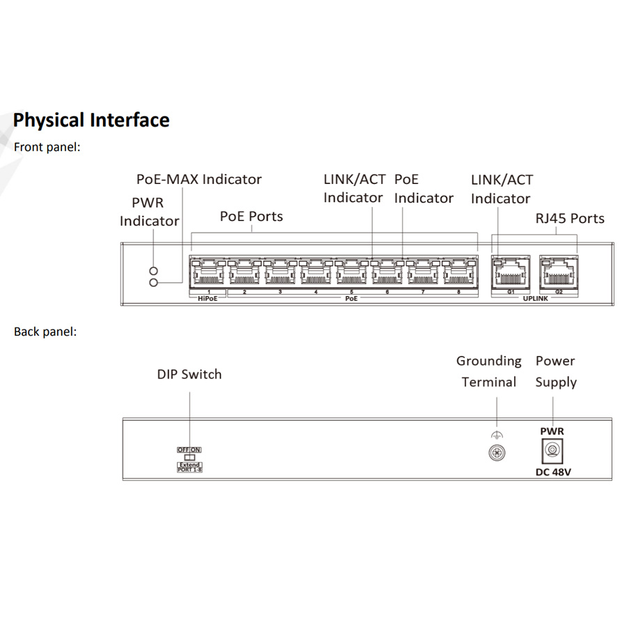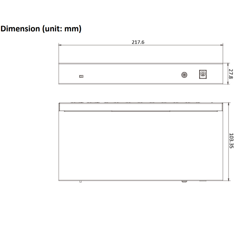 GARANCIA:24 hónapPOE-OSZTÁLY:PoE+PoE-osztály:HiPoE (max. 60W)PoE átviteli távolság:max. 250mPOE PORTOK SZÁMA:8Power supply:48 VDC, 2.5 AMax. portok száma:10Uplink portok száma:2RJ45 Uplink portok száma:2ETHERNET-SZABVÁNY:10/100 MbpsTELJESÍTMÉNY:120 WMENEDZSELHETŐSÉG:nem menedzselhetőUPLINK:1 GbpsSúly:0.55 kgDimensions (L × H × D):217.6 mm × 27.8 mm × 103.35 mm